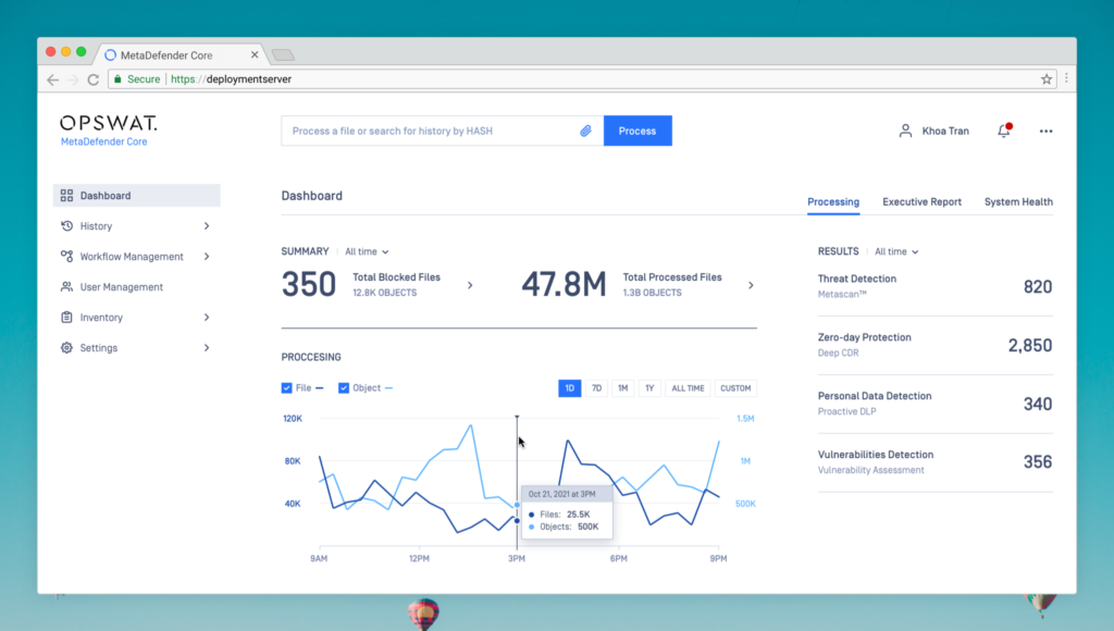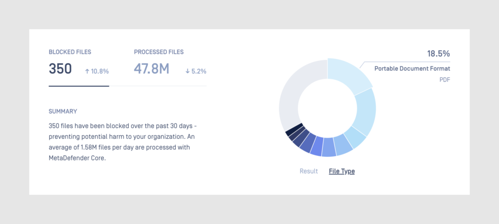 MetaDefender Core gives detailed reports for administrators and data scientists to monitor current operations, analyse history, predict and make precise decisions.