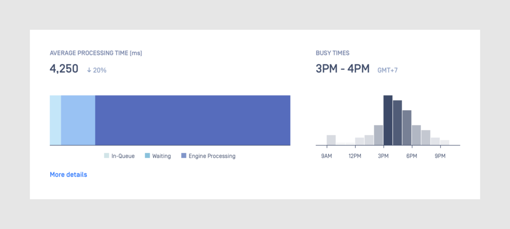 Average processing time points out in which particular process the file stays the longest, while Busy time visualizes the system’s traffic.