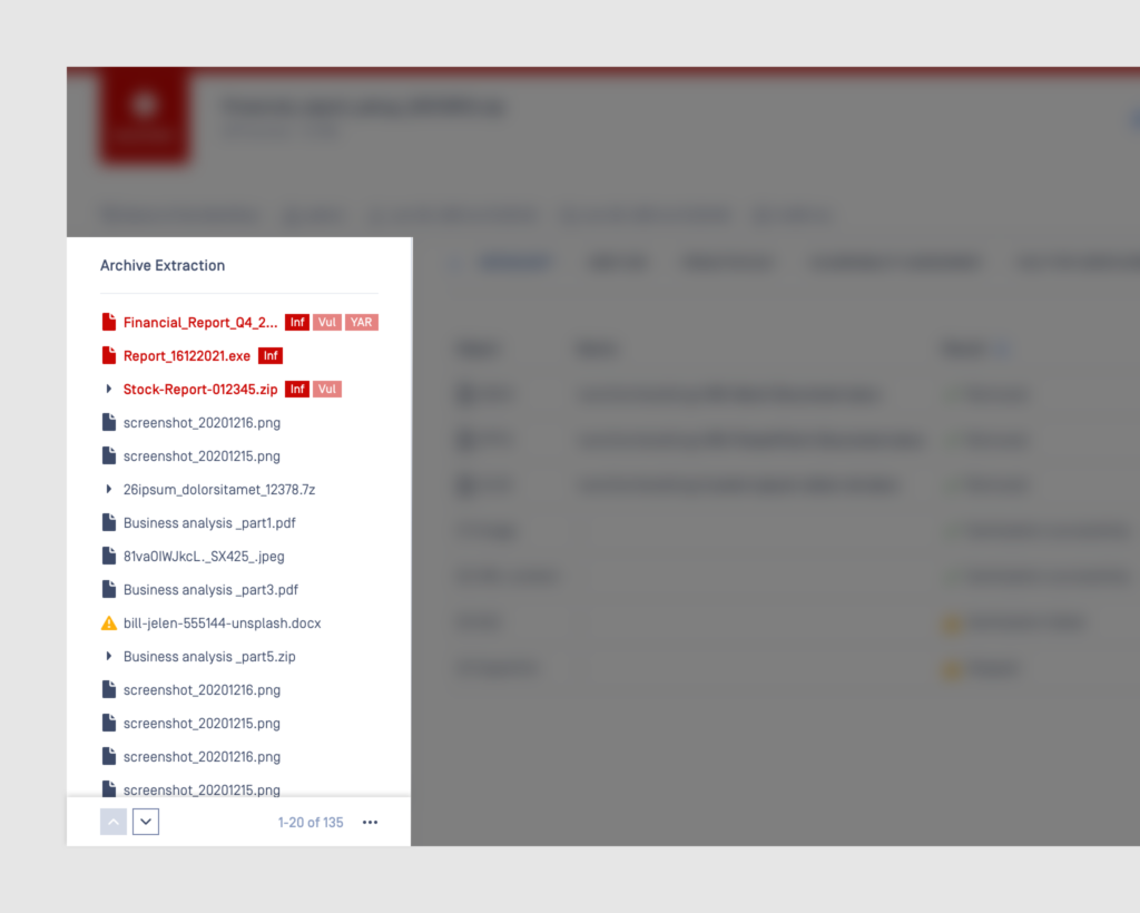 Extracting and scanning an archive file using Archive Extraction engine prevents zip bomb attack by detecting and block it in advance. The engine also supports scanning of both extracted and unextracted file, which improves detection rate and decrease scanning time.